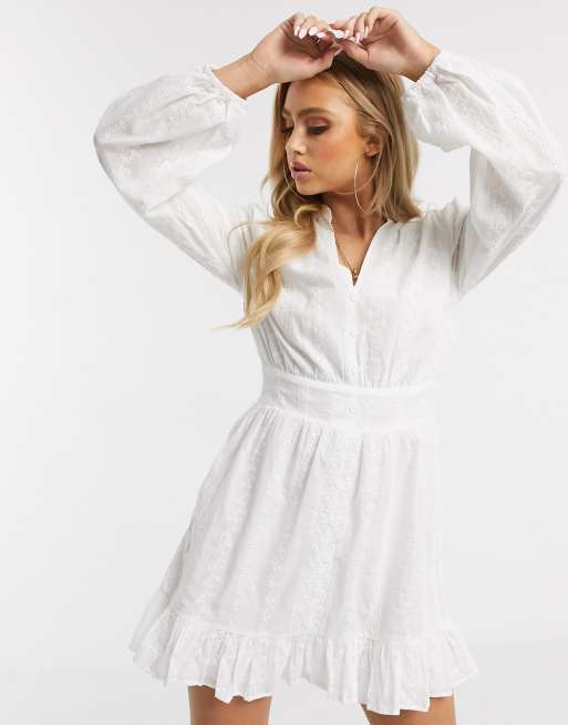 Missguided Broderie Jurk Met Volant Langs De Zoom In Wit Asos