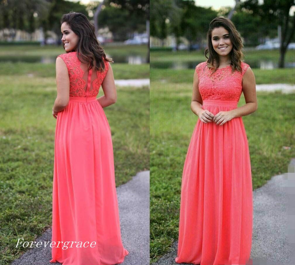 Evening Dress Chiffon Sleeveless Coral Dress Lace By Dioriss Coral Bridesmaid Dresses Coral Summer Dresses Coral Dress Wedding
